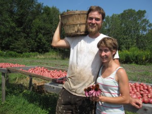 It’s getting to be that time of year when we’re determined to enjoy every last minute of summer crops. The most significant indicator of summer’s end is that Megan and Neil, two of our full-season apprentices, will be leaving the farm at the end of this week. Having apprentices is one of the best things about running a small-scale farm. We may not get off of the farm often during the summer, but sometimes it feels like the world comes to us. It’s always great to see how much apprentices learn and grow and gain confidence throughout the season. Neil is one of the first apprentices of whom Bill ever said “He can keep up with me!” and Megan has a great eye for detail and an admirable willingness to challenge herself. We appreciate all they have contributed this season, and no doubt you do too, since their hard work has been crucial to the production of every single vegetable in the shares.