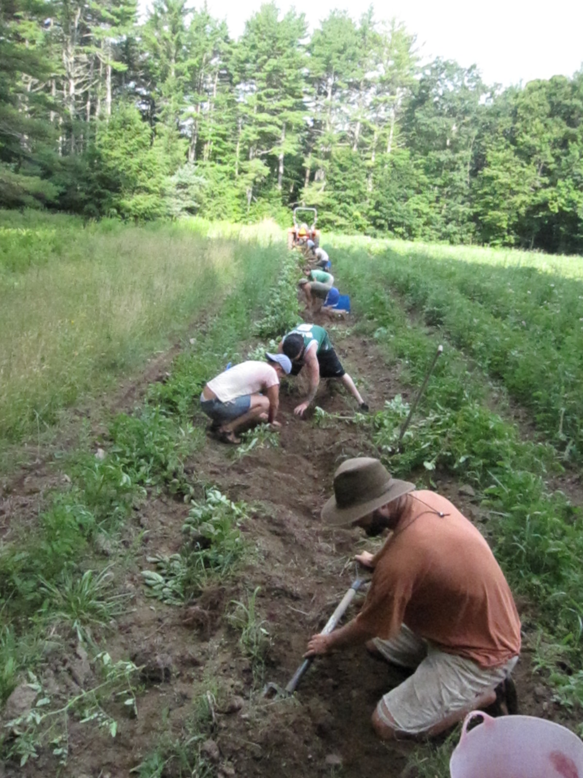 Our row of potato diggers! The first potato harvest of the season. Our crew carefully dug the ruby gems out of the soil first thing Saturday morning, before the heat fully set in.