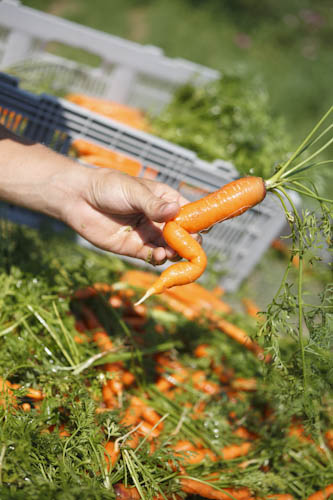 Oh, carrots. You never fail to entertain. Are you the lucky CSA member who received this leggy root?! Photo by Praire Stuart-Wolff (www.cultivateddays.com).