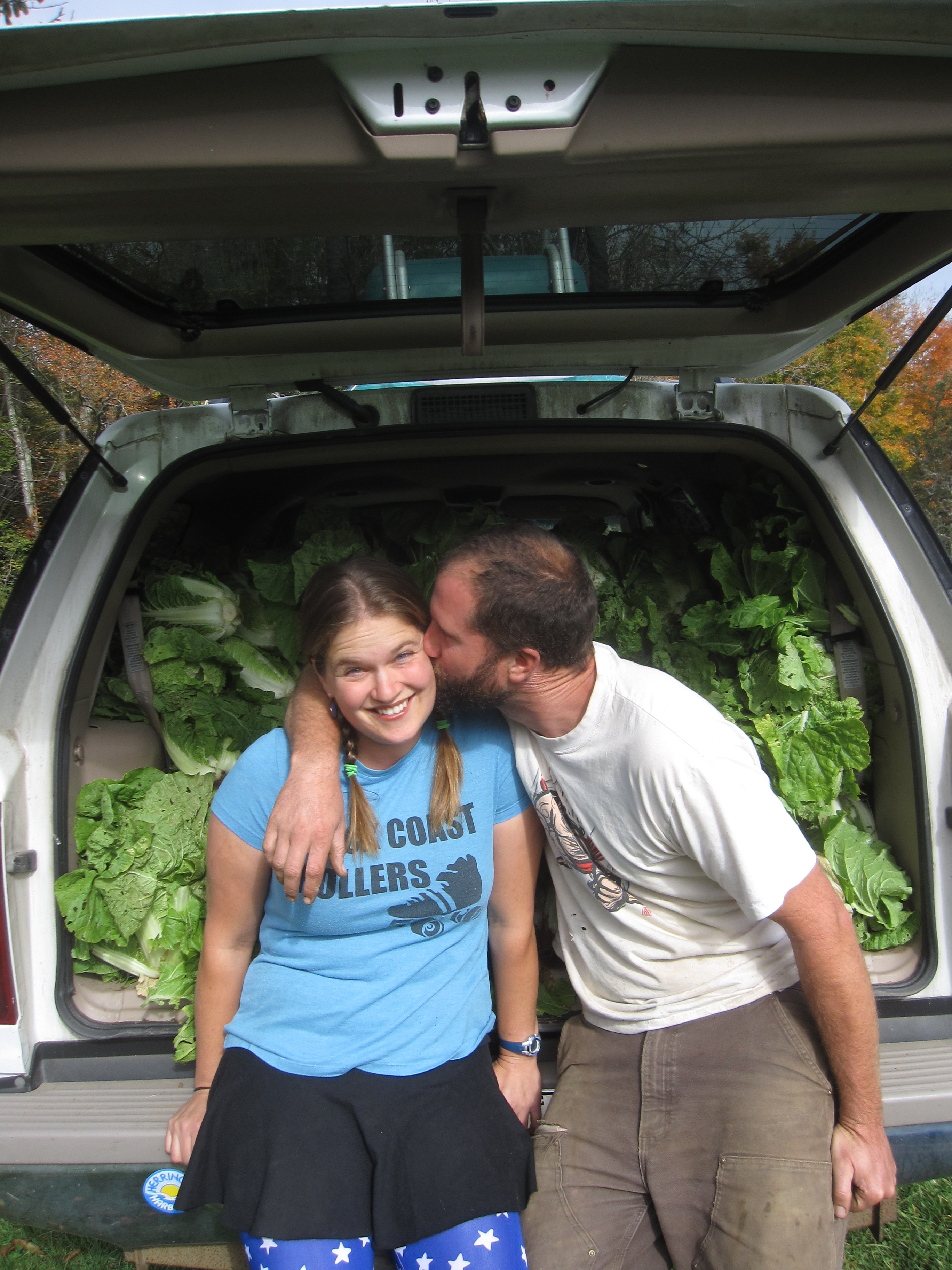 The back of the van is stuffed floor-to-ceiling with Napa cabbage but Reba is definitely not in normal harvesting wear: star leggings and a mini-skirt means that she’s leaving the harvest day to be a carhop for the Rock Coast Rollers/HCF CSA Financial Aid Fund fundraiser. An unusual day on—and off—the farm.